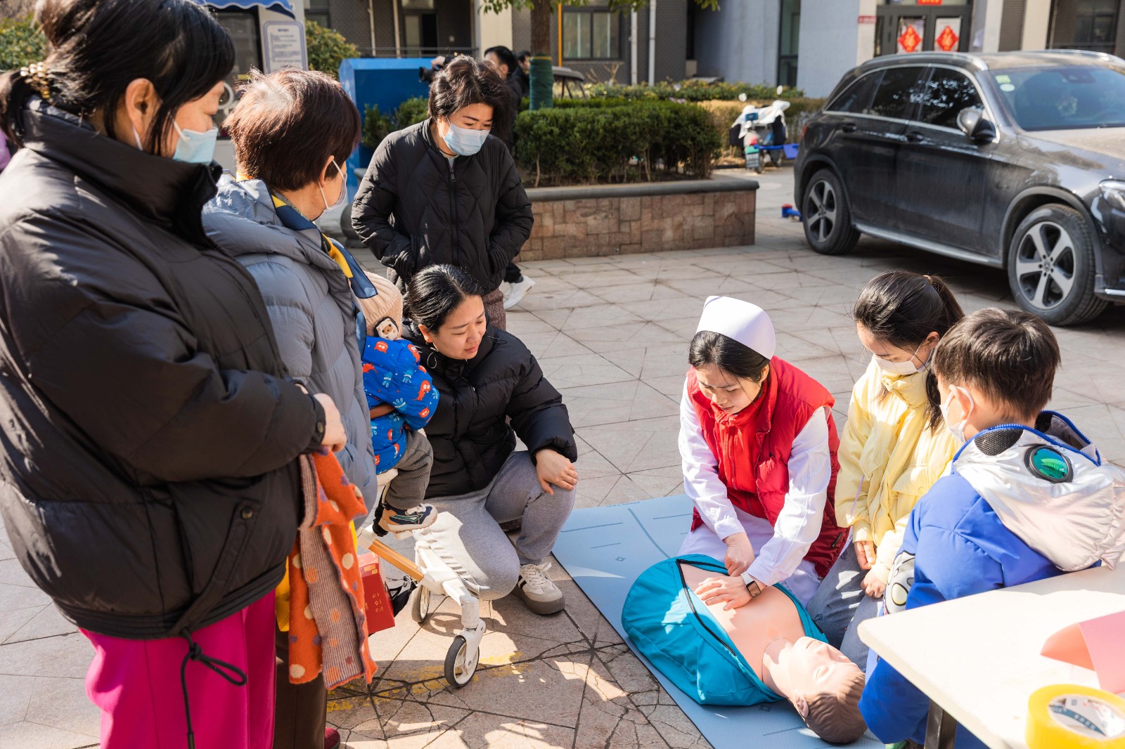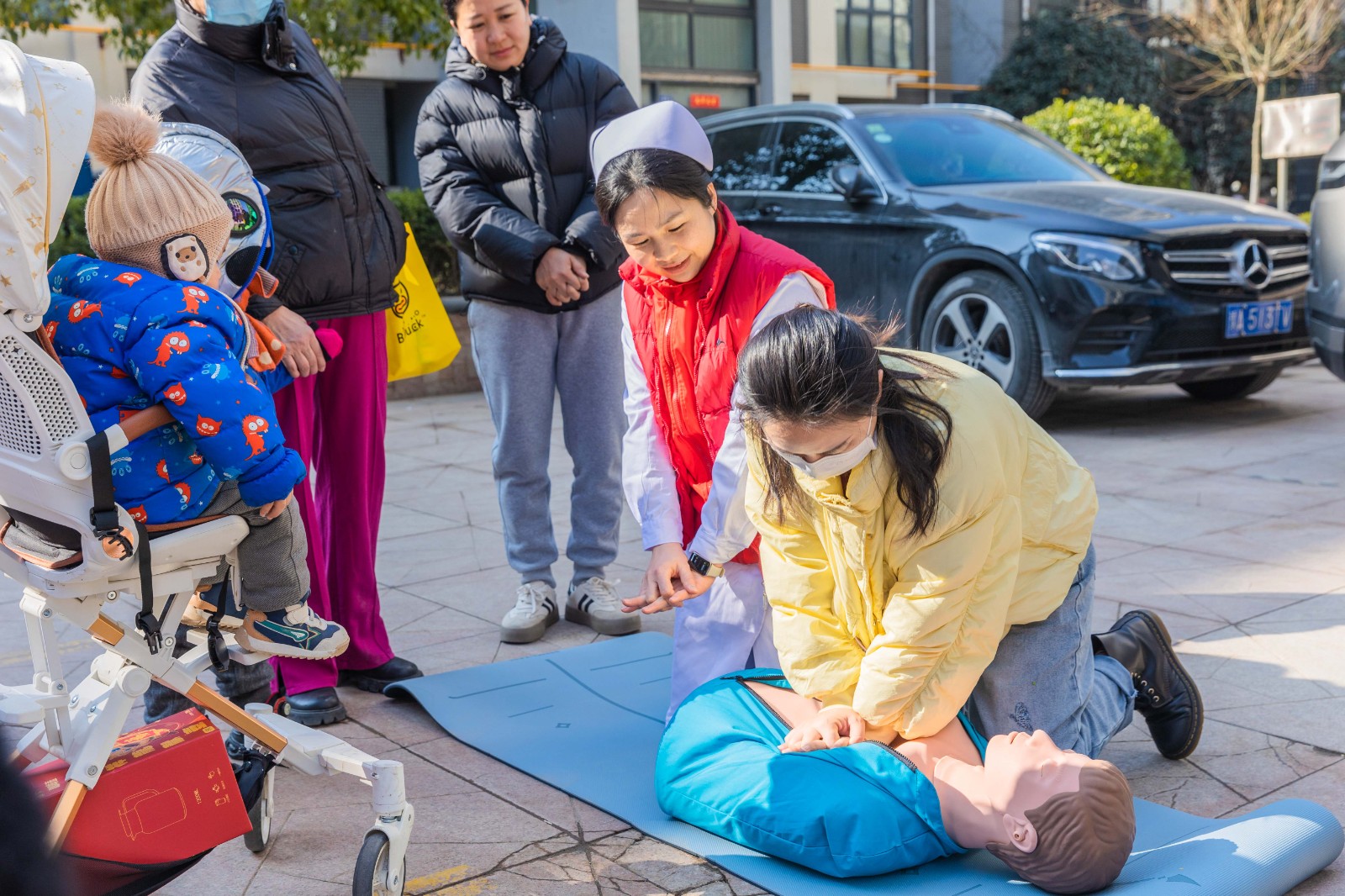 同时志愿者老师用浅显易懂的语言,生动、细致地向大家讲授关于心脏复苏等健康急救知识。通过现场演示、提问问答等形式引导大家积极参与实际操作,并认真指点。