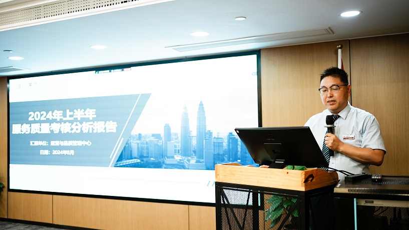 会议首先由公司财务总监、运营总监、常务副总经理分别从2024年上半年预算执行情况、2024年上半年服务质量考核情况、2024年上半年市场开发情况进行汇报。