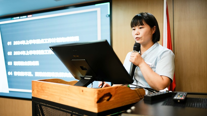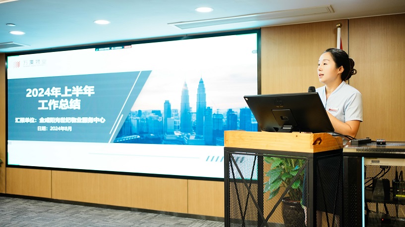 总部职能中心、各物业服务中心以及外地分公司以抽签形式对2024年上半年重点工作计划完成情况进行总结汇报。