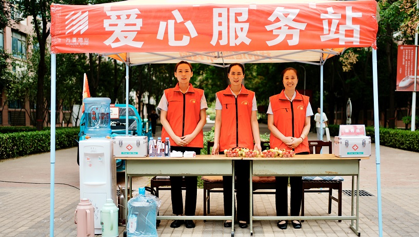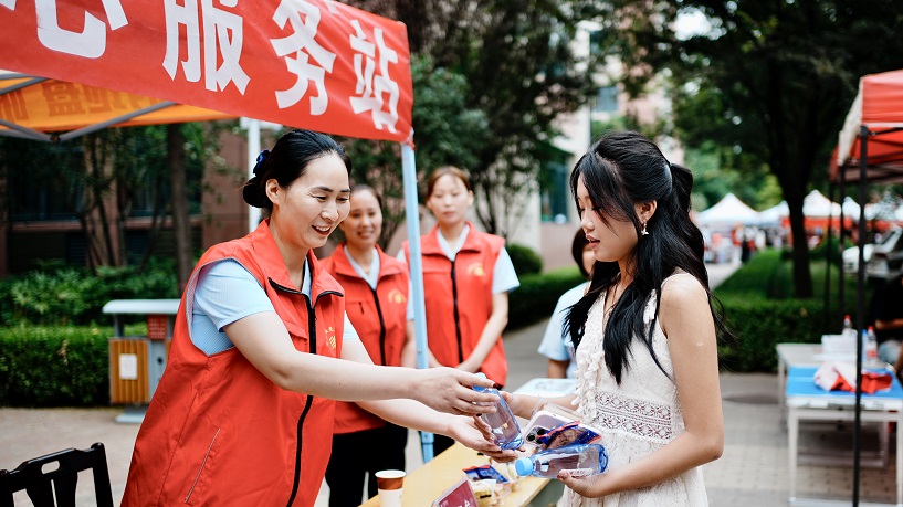 迎新当天,物业服务中心的准备工作紧张而忙碌,爱心服务站的暖心服务早已准备就绪。全程为新生提供爱心服务。