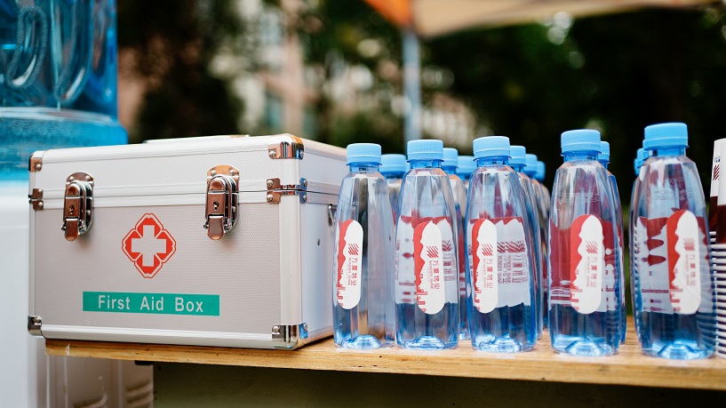爱心服务站内的急救箱、甜点、水果、瓶装水、纸杯摆放整齐,标识展牌摆放醒目,焕然一新的爱心接送车整齐停放,共同迎接新生们到来。