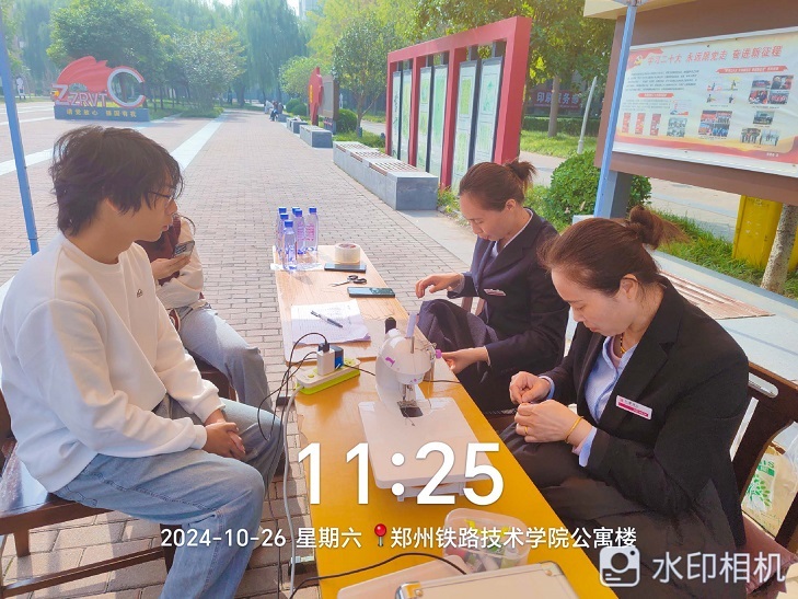 10月26日,万厦物业郑州铁路职业技术学院物业服务中心安排了一场为广大学子献爱心,让同学们体验家的温暖与舒适,宿管阿姨们义务为学生缝补衣物活动。