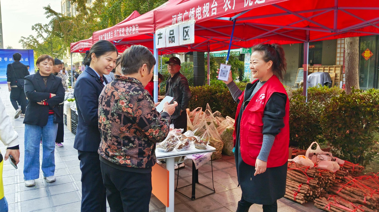 万厦物业维也纳森林物业服务中心与河南广播电视台交通事业部、郑州市农业农村局、金基社区在森林阳光花园举办了一场为期三天的“助农惠民”消费帮扶活动。