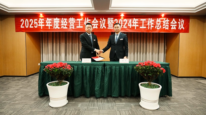 目标是前行的动力,责任是成功的保障。会议第一项,由万厦物业总经理周叶先生,与各区域及各事业部负责人分别签署了《2025年目标责任书》。