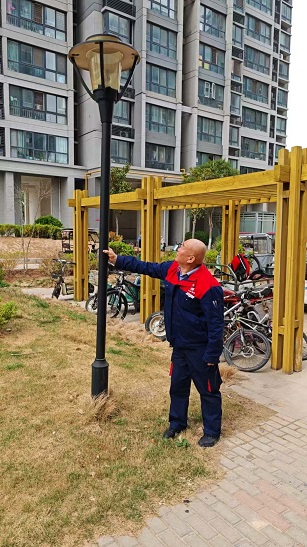 工程维修部一一排查园区内的灯杆,拧紧固定螺丝,保证夜晚正常照明;