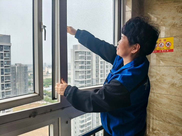 各项目负责人还对楼宇进行了重点部位排查,检查阳台窗户是否有花盆杂物,避免高空坠物。对公共区域走廊窗户进行重点排查,防止强风损害。