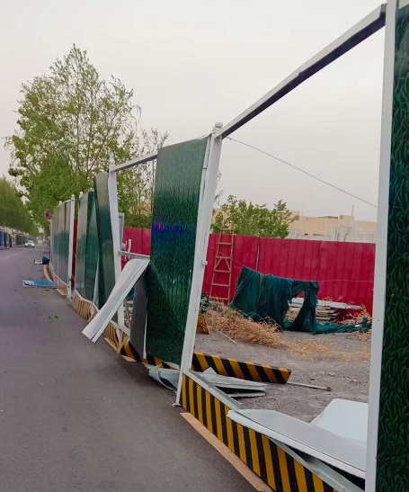 受大风天气影响,中州大道车辆段外围部分围挡出现倾斜倒塌,万厦人一早赶往现场查看情况后,便开始了紧急维修。