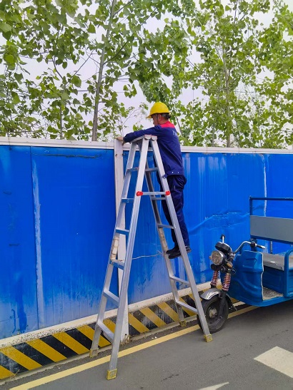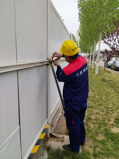 设置安全警示并临时固定围挡,确保通行安全。在风势减弱后,维修师傅们协同作战,立即对围挡进行全面检修和加固。