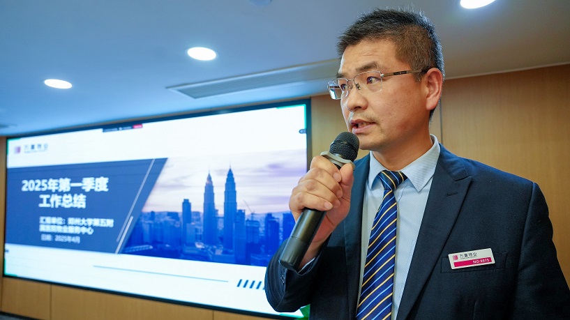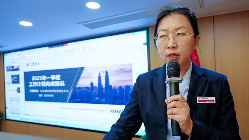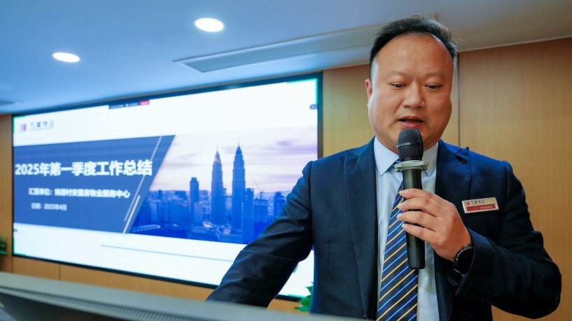 总部职能中心、各物业服务中心以及外地分公司以抽签形式对2025年第一季度重点工作计划完成情况进行总结汇报。