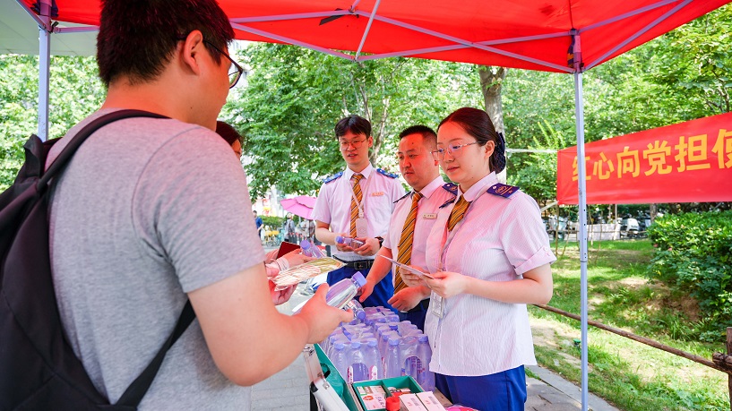 6月7日清晨,河南万厦物业管理有限公司党支部党员及入党积极分子们早早来到姚砦站地铁口,精心搭建起高考便民服务站。服务站内准备了矿泉水、藿香正气水、清凉油、六神花露水等防暑降温物资,为考生和家长提供贴心关怀。