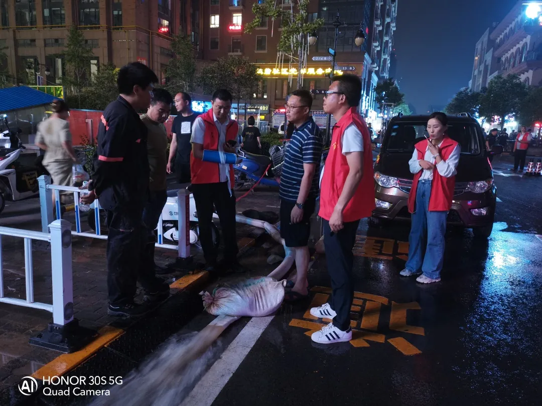 万厦物业总经理周叶同志在得知暴雨消息后第一时间召集高层会议,商议解决方案。冒着大雨前往金成时代广场查看现场情况,对灾情做出紧急响应。